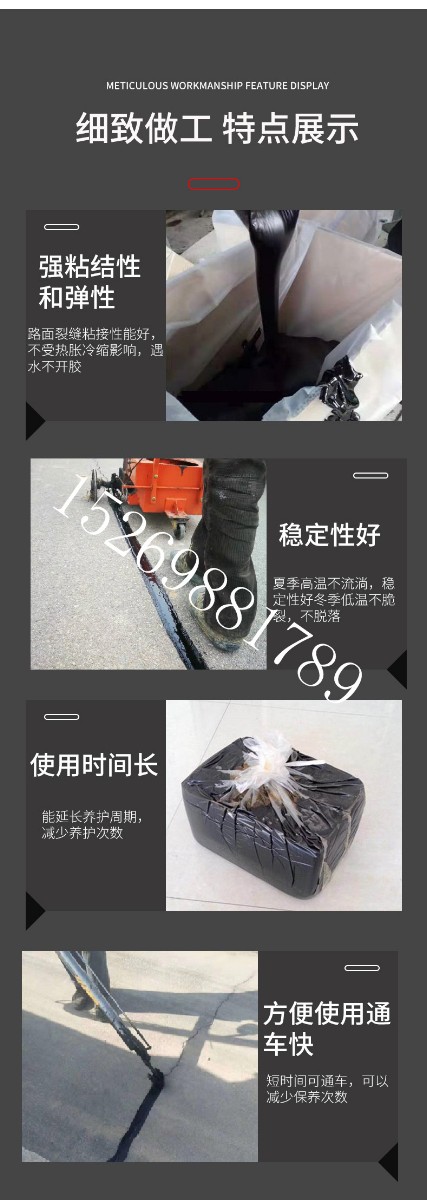 灌縫膠 類別分為 高溫型,普通型,低溫型,寒冷型,嚴寒型,產(chǎn)品細膩有光澤,滲透性好,路面裂縫填充飽滿,塑形好,成型快,夏季高溫不流淌,冬季低溫不脆裂,表面有彈性,施工流暢無雜質無沉淀不堵管,施工完即可通車,廠家咨詢電話15269881789全程為您一對一服務。