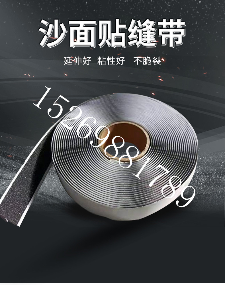 無胎基貼縫帶,含砂平面貼縫帶,含砂凸面貼縫帶,有胎基貼縫帶,雙面粘貼縫帶,立面粘貼縫帶,裂縫貼,嵌縫帶,壓縫帶,產品施工操作簡單,可單人操作,產品耐摩擦不脫落,表面粘貼力強,冬季施工不用火烤,柔軟有彈性,耐低溫零下40度,自粘效果好,用手撕掉隔離膜邊貼邊用腳踩實,與路面粘貼牢固,密封防水性好,永不脫落,砂面貼縫帶可隨路面裂縫隨意轉彎,美觀整潔,靈活施工,廠家咨詢電話